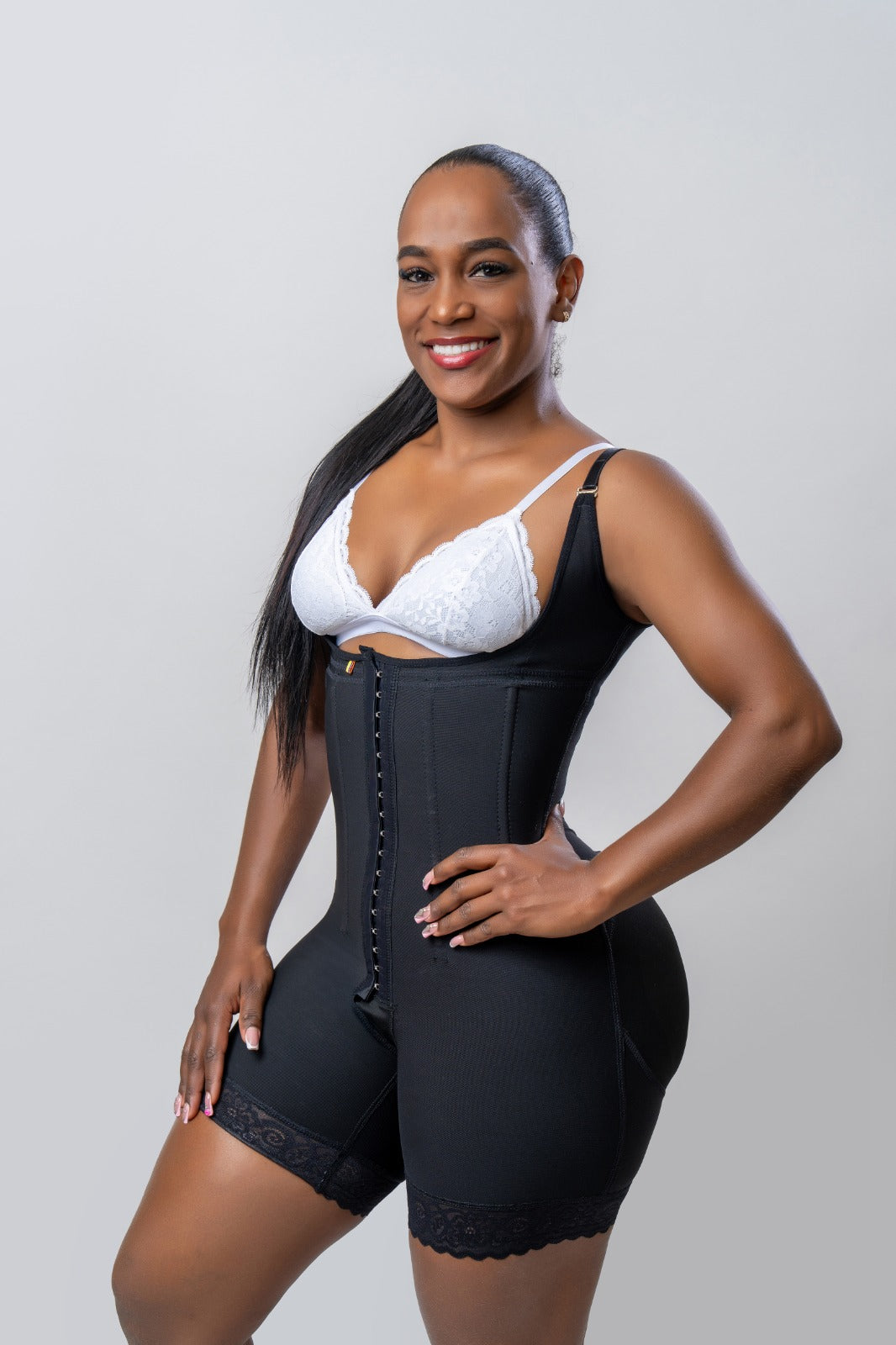 Confeccionada en Powernet Premium, un tejido de lujo, resistente, suave e hipoalergénico, realza tus glúteos y busto de forma natural, elimina los rollitos de la espalda y estiliza tu figura completa hasta la media pierna.